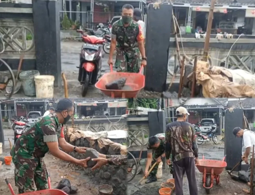 Wujudkan Kemanunggalan TNI-Rakyat, Babinsa Pimpin Gotong Royong Perbaikan Pagar Makam di Desa Sumbersuko