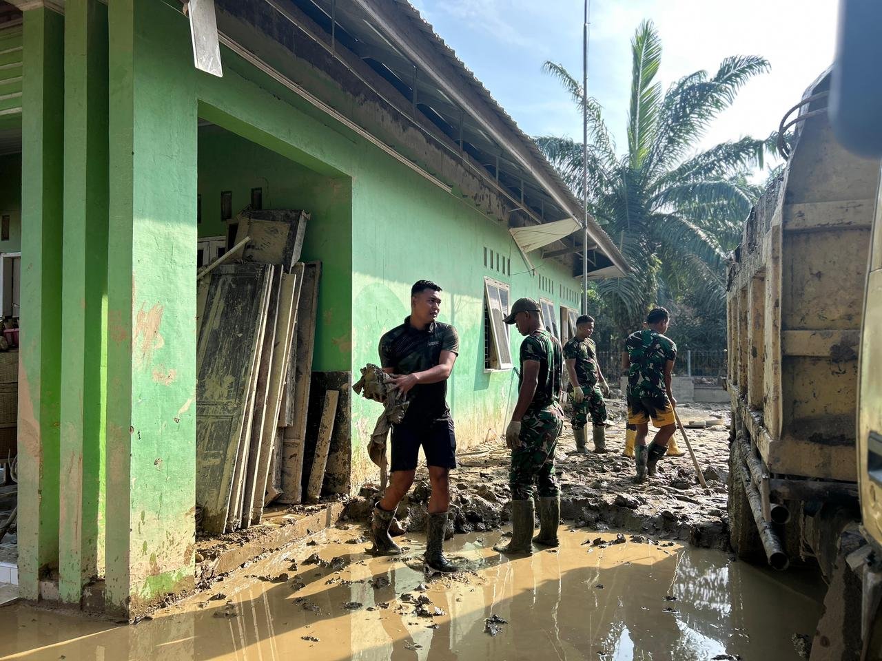 Aceh Tamiang – Dalam rangka mendukung kebersihan lingkungan dan meningkatkan pelayanan kesehatan masyarakat, prajurit Yonif 117/KY melaksanakan kegiatan pembersihan di Puskesmas Pembantu Kampung Durian, Kecamatan Rantau, Kabupaten Aceh Tamiang,